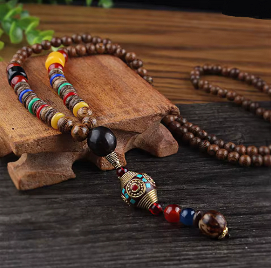 „Když se spojí tradice, energie a styl, vzniká víc než jen šperk.“ Tento dlouhý náhrdelník typu Mala (108 korálků) je inspirovaný buddhistickou tradicí a slouží nejen jako výrazný doplněk, ale i jako osobní talisman pro vnitřní klid a harmonii.