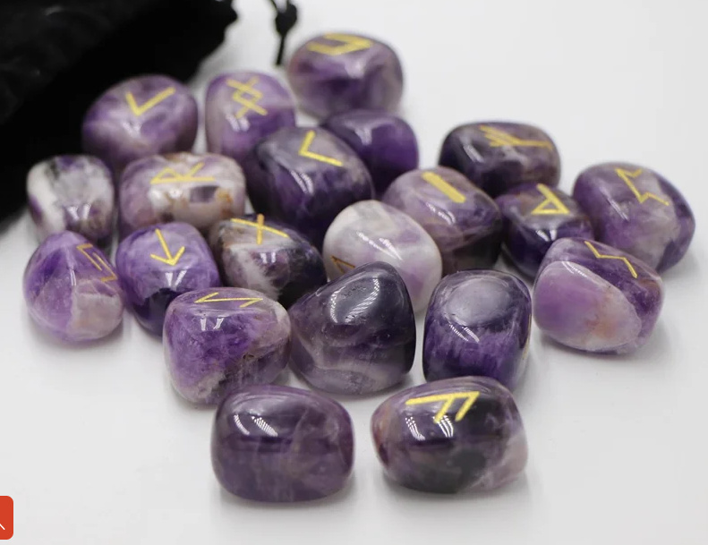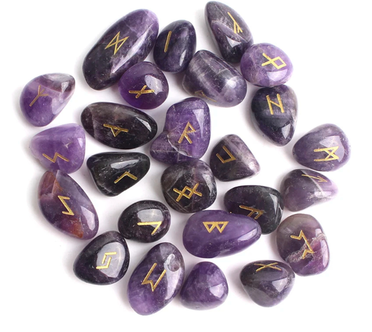 Beschreibung Ametyst Runen-Alphabet Naturstein, 10 - 30 mm 25 Stück