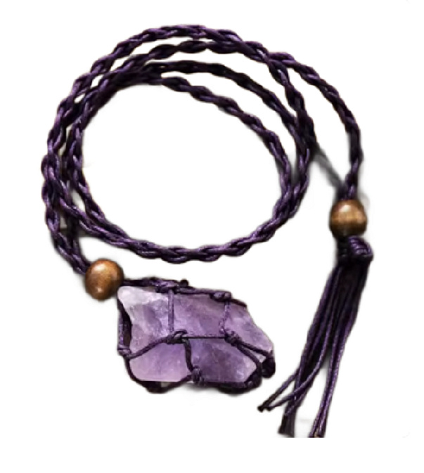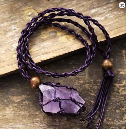 Tento jedinečný náhrdelník z přírodního ametystu vyniká svým hlubokým fialovým odstínem a silnou duchovní energií. Surový kámen je zasazen do ručně pletené síťky, která podtrhuje jeho přirozenou krásu a dodává šperku autentický boho vzhled. Pletená šňůrka s dřevěnými detaily působí harmonicky a přirozeně. Každý kus je originál – stejně jako energie, kterou do života přináší.