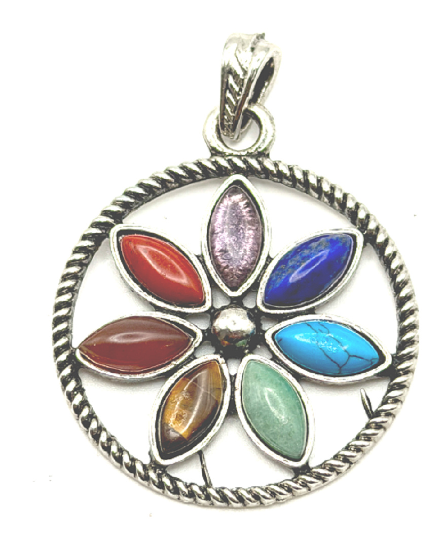 Tento nádherný čakrový přívěsek ve tvaru květu je silným symbolem harmonie, rovnováhy a životní energie. Každý barevný kámen představuje jednu z hlavních čaker a společně vytváří dokonalý celek, který pomáhá vyrovnávat energii v těle i mysli. Precizní zpracování v kombinaci s pestrými minerály z něj dělá nejen výrazný šperk, ale i duchovní talisman, který vás bude provázet každý den.