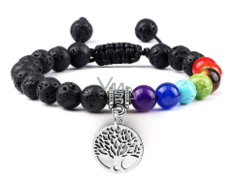 Chakra-Armband Tree of Life + Lava schwarz, handgestrickt, verstellbare Größe, 8 mm Kugel, geboren von den vier Elementen