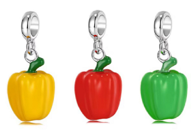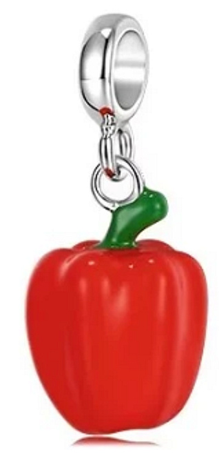 Roztomilý přívěsek znázorňující červenou papriku. Máte rádi zeleninu? Tím pádem je tento přívěsek pro vás jako dělaný! Obdarujte sebe nebo své blízké a doplňte svůj náramek o další parádní a originální kousek.