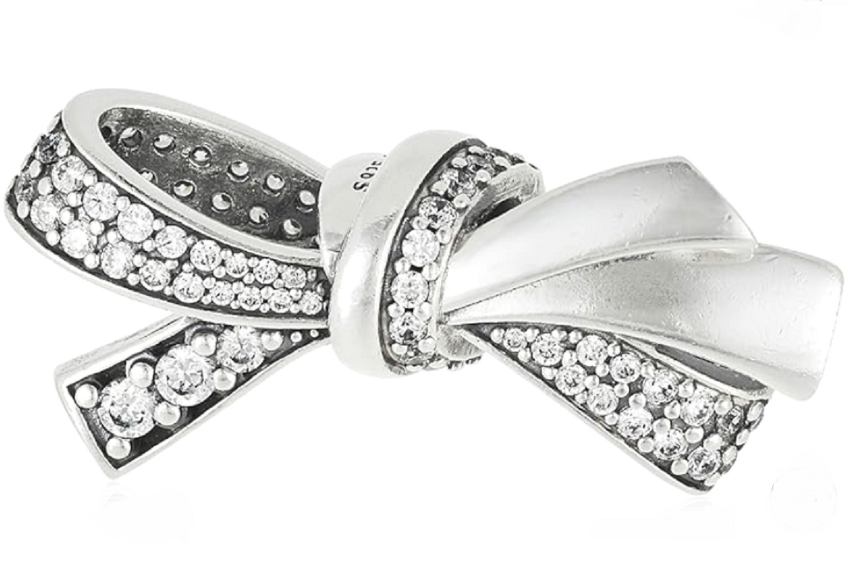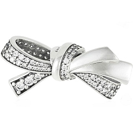 Tento nadrozměrný přívěsek ve tvaru mašle je navržen tak, aby dělal náramek viditelným. Díky svému nadživotnímu vzhledu a zářivému kamennému zdobení z kubistických zirkonů spojuje ručně dokončované stuhové kouzlo vaši sbírku kouzla dohromady propůjčuje stylům náramků hravou sofistikovanost. Noste mašličkové kouzlo na svém oblíbeném náramku, nebo jej navlékněte na náhrdelník jako přívěšek.
