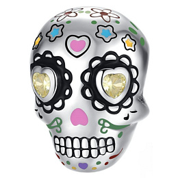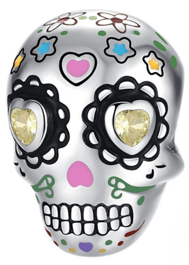 Korálek ve tvaru lebky je dekorován Zirkony a smaltem. Výhodou tohoto jednoduchého přívěsku je, že může zkrášlit nejen Váš náramek nýbrž i Váš náhrdelník.