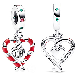 Užijte si sváteční atmosféru naplno s visacím přívěskem Dvě vánoční lízátka ve tvaru srdce. Přívěsek s hůlkovými lízátky odráží hravé tradice tohoto mimořádného ročního období. Dvě hůlková lízátka tvoří srdce s červenými smaltovanými detaily a ve středu visícího srdce je gravírovaný výstižný nápis „Sweet heart" Sladké srdce. Na zadní straně každého hůlkového lízátka jsou gravírované odpovídající vzkazy „Candy cane wishes" Sladké přání a „Mistletoe kisses" Jmelí polibky, díky kterým je přívěsek zábavným a svátečním doplňkem vašich oblíbených přívěsků. Oslaďte si svůj vánočně laděný náramek jedním z vánočních přívěsků.