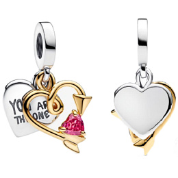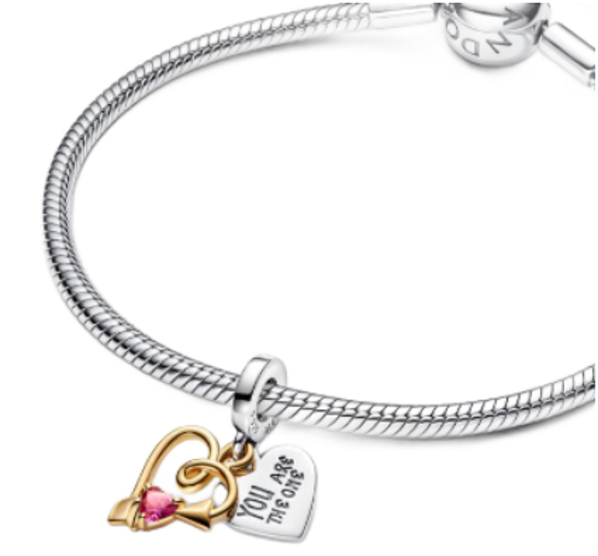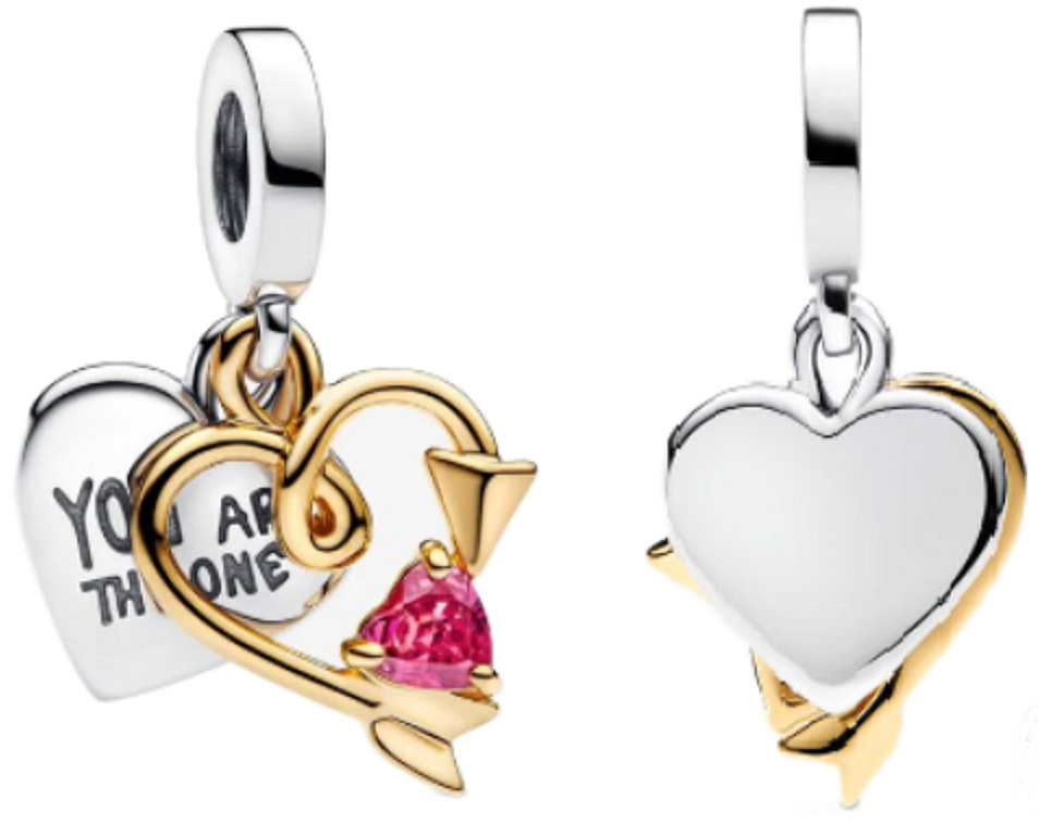 Nechte lásku vést cestu s gravírovatelným přívěskem se srdcem a šípem. Přívěsek ve tvaru srdce má na jedné straně vyrytý vzkaz „YOU ARE THE ONE“ a na druhé prázdné gravírovatelné plátno, které si můžete přizpůsobit. Amorův šíp je vytesán do druhého závěsu srdce, je jemně pozlacen 14karátovým zlatem a je osazen zářivým červeným kamenem ve tvaru srdce. Noste ji jako univerzální symbol lásky nebo ji darujte tomu, kdo vás drží za srdce.