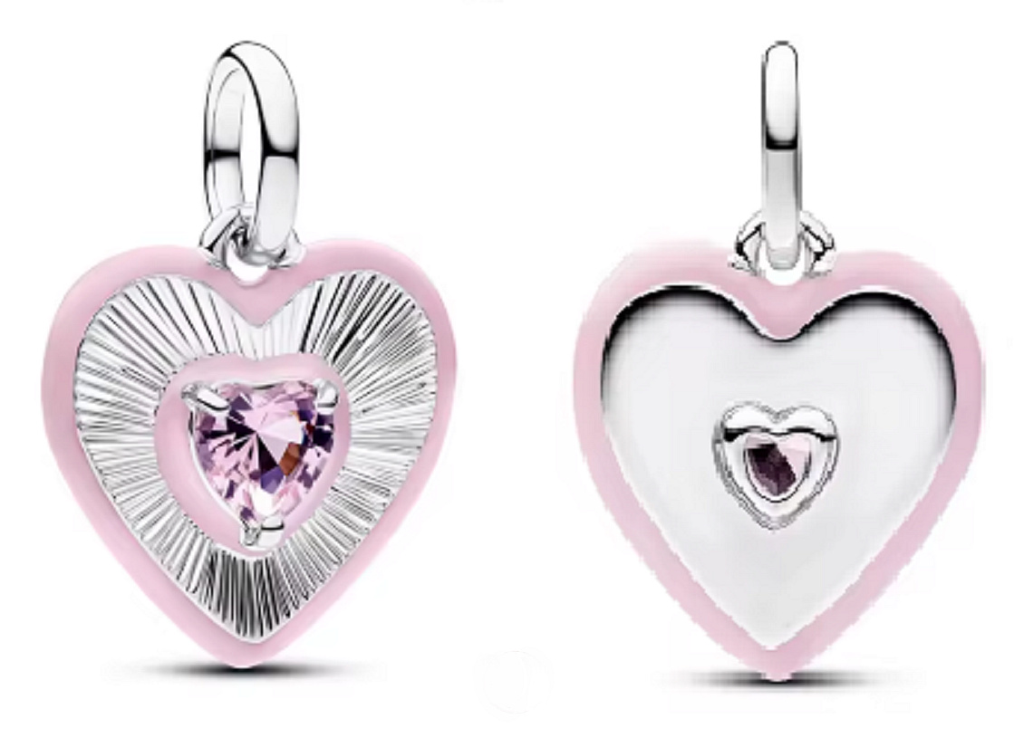 Okouzlující přívěsek ve tvaru srdce je ztělesněním lásky, něhy a emocí. Dominantou přívěsku je růžový krystal ve tvaru srdce, který je zasazen do jemně zdobeného rámu s růžovým lemem. Celek působí luxusně, romanticky a velmi žensky.
