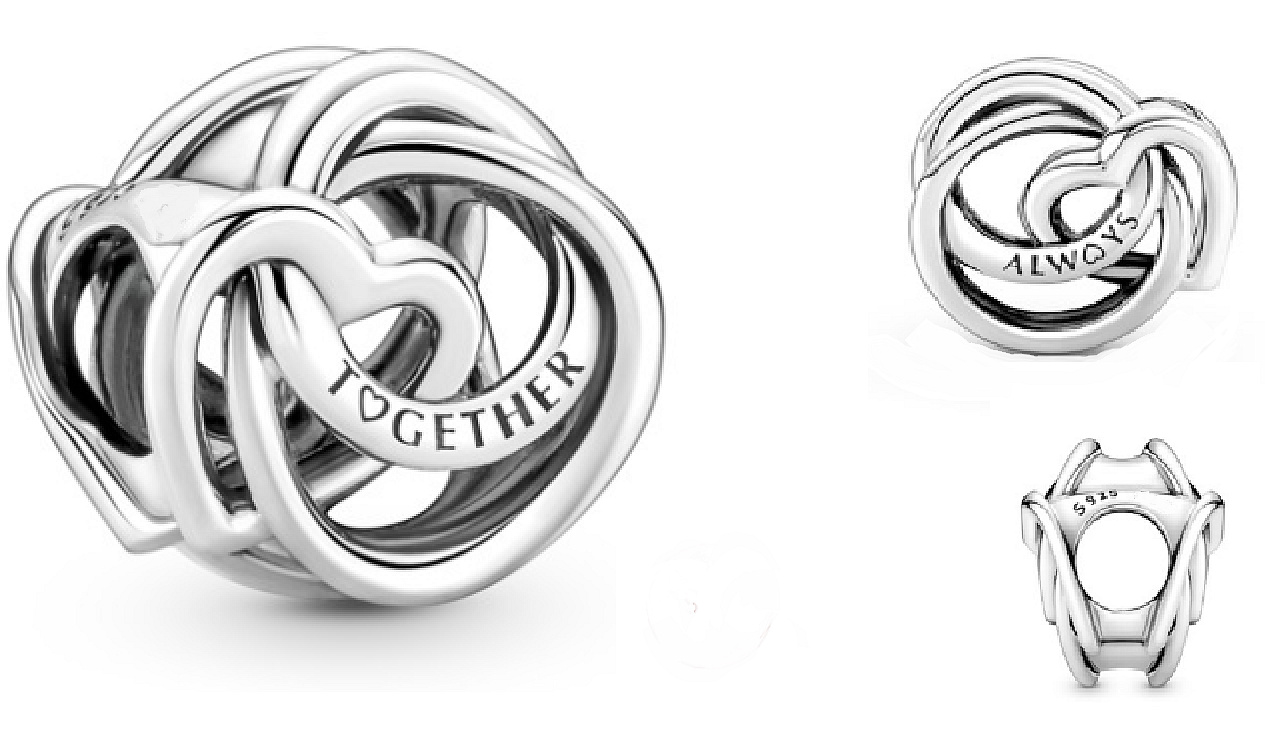 Korálek ve tvaru propletených kruhů a srdce nese nápisy "Always" (vždy) a "Together" (spolu). Tento okouzlující přívěsek je perfektním dárkem pro Vás i Vaše blízké. Buďte originální, buďte jedinečná!