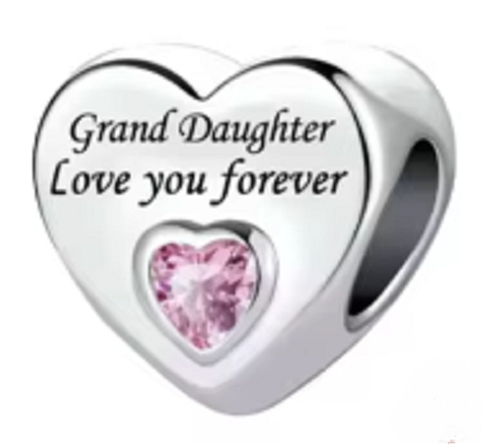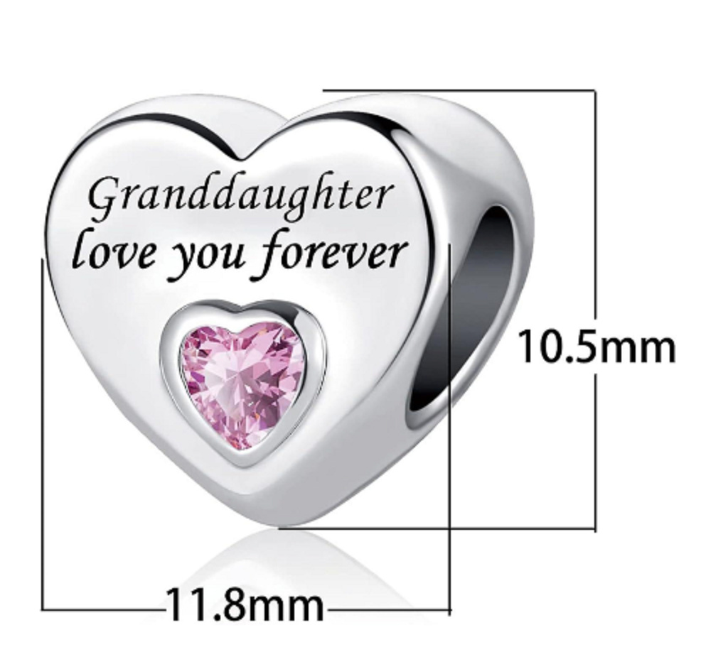 Řekněte své babičce tímto korálkem se srdíčkem, že ji budete mít v srdci napořád. Láska je nejvíc co můžeme od života dostat. Korálek je doplněn o růžový kubický zirkon a má vyrytý text: "Grand daughter love you forever" - Vnučka tě miluje navždy. Ideální dárek pro všechny milované babičky.