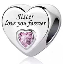 Řekněte své sestře tímto korálkem se srdíčkem, že ji budete mít v srdci napořád. Sesterská láska je jedním z nejmocnějších kouzel života. Korálek je doplněn o růžový kubický zirkon a má vyrytý text: "Sister love you forever" - Sestra tě miluje navždy. Darujte ho té, která je celý život vaší součástí. Ideální dárek pro všechny milované sestry.