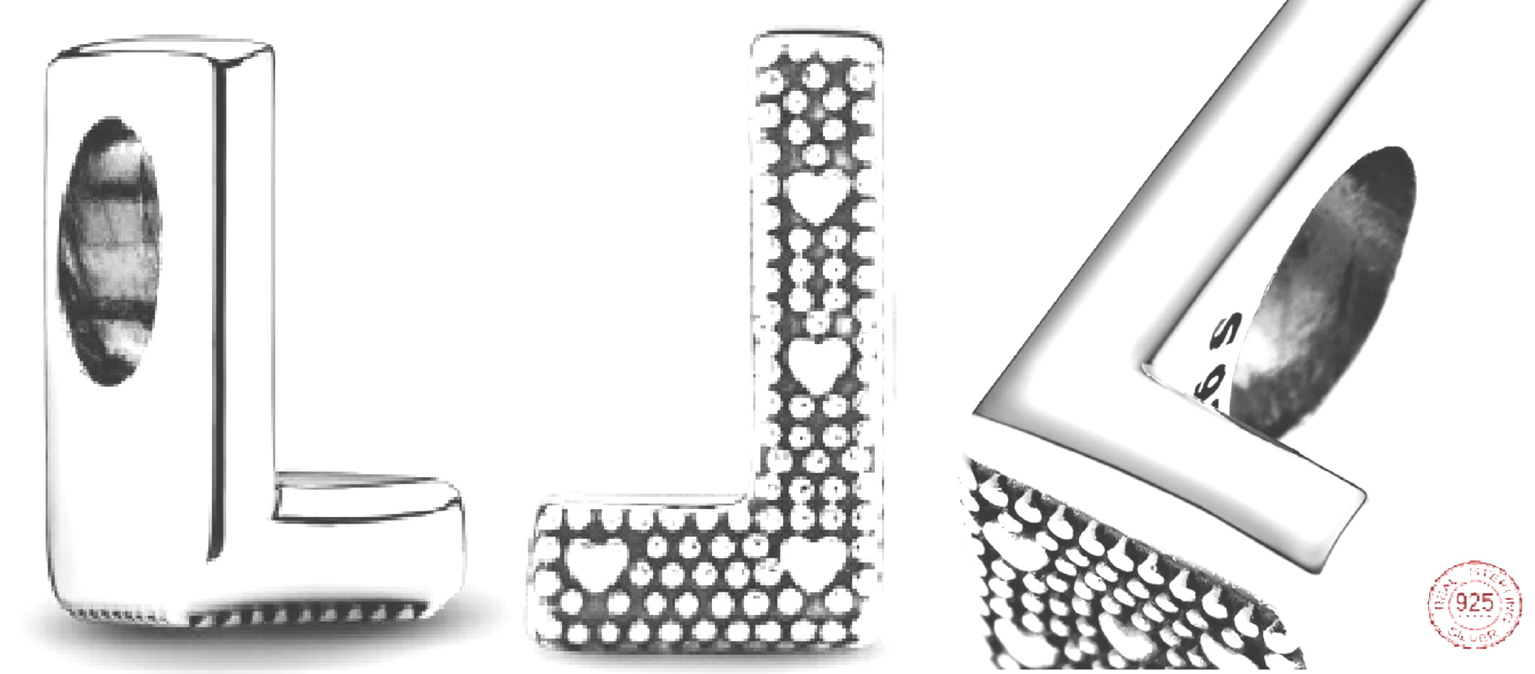 Vyprávějte svůj příběh prostřednictvím přívěsků inspirovaných písmeny abecedy, která vám umožní vytvořit slova, která pro vás znamenají nejvíce. Přidejte smysluplné iniciály na svůj náramek, nebo vytvořte osobní zprávu s písmenem L. Oboustranný přívěsek je na přední straně leštěný a na zadní straně má vyražená srdce a koule. Přidejte tento šperk do své sbírky kouzel nebo jej darujte někomu, kdo má zvláštní spojení s tímto dopisem.