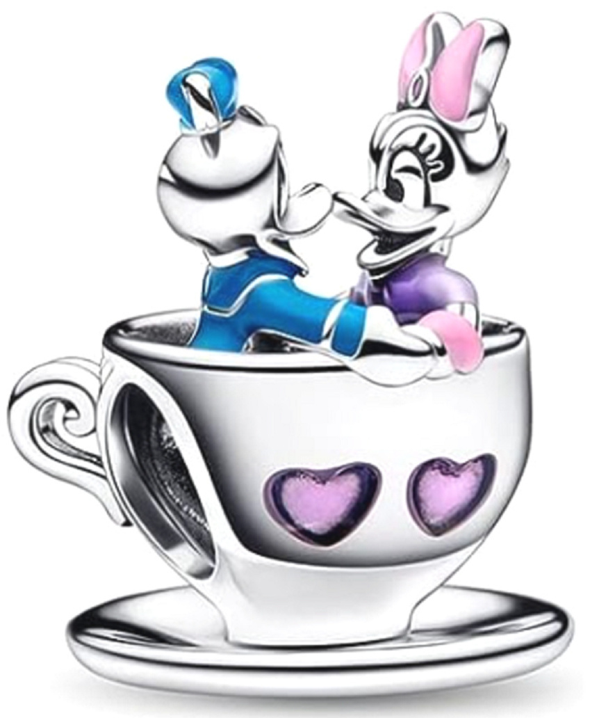 Donald a Daisy podnikají kouzelnou jízdu v šálcích! Ve vzduchu je zjevně láska, jak můžete vidět srdce na šálku a políbit je. Oznamujeme, že hrníček s označením dvěma srdci se právě chystá roztočit a přistát na vašem náramek! Přívěsek Kačer Donald a Daisy v hrníčku oslavuje jejich mnohaletou lásku dobrodružstvím na kolotoči v hrníčku. Vydejte se s radostnými přáteli na cestu věrné lásky.