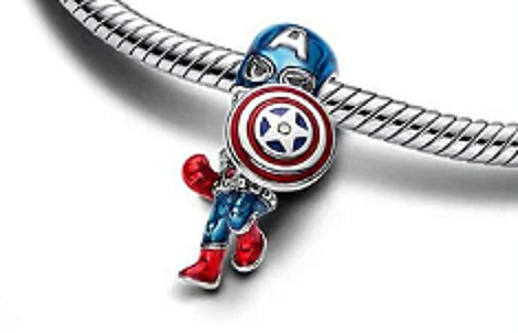 Postavička je pokryta ručně nanášeným modrým smaltem a nese jeho charakteristický štít se symbolem Hvězdy, který představuje jeho lásku ke Spojeným státům. Tento jedinečný přívěsek Marvel Avengers představuje naději a vůdcovství, takže ho můžete nosit jako připomínku síly nebo ho darovat svému blízkému fanouškovi Marvel.