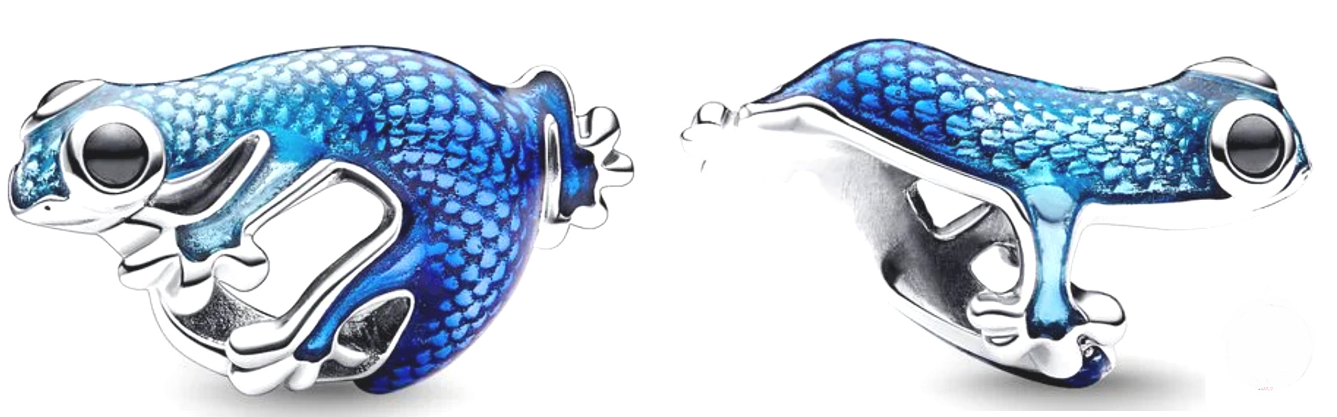 Roztomilý přívěsek s ještěrkou, inspirovaný živým pohybem skutečného Gekona, se obtáčí kolem řetízkového náramku nebo nosného prvku na přívěsky. Přes průhledný smalt v odstínech modré a tyrkysové barvy prosvítá realistický šupinatý vzor, který vytváří metalický efekt. Přívěsek s gekonem je o něco menší než většina přívěsků, což mu dodává variabilitu při kombinování s dalšími přívěsky. Noste ho jako symbol pozitivity, odolnosti a obnovy.