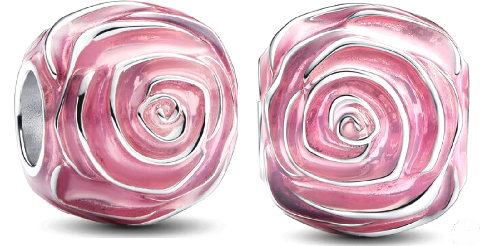 Korálek růžové růže v květu představuje krásu rozkvetlých květin. Jeho symbolický design představuje rozkvetlou Růži zdobenou ručně aplikovaným transparentním třpytivým růžovým smaltem. Vrstvené okvětní lístky vytvářejí trojrozměrný efekt. Tento kousek, inspirovaný symbolikou růží – představujících radost, přátelství a nové začátky – je hmatatelným vyjádřením lásky. Darujte kousek věčné krásy a upřímných emocí s tímto propracovaným korálkem.