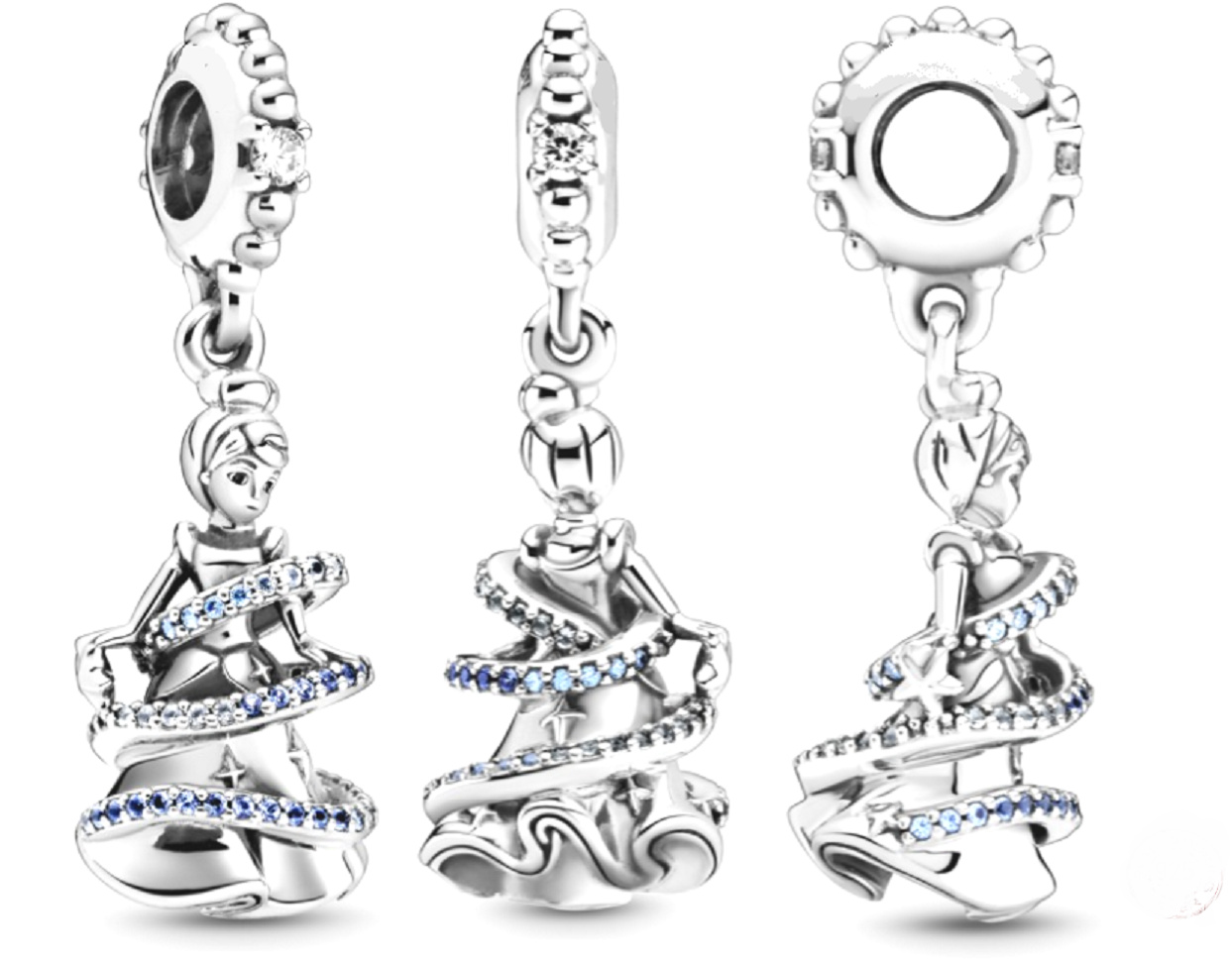Připravte se na okouzlení Disney Popelčin ples. Tento kousek byl navržen na oslavu 70. výročí Disneyho Popelky. Design zahrnuje točící se princeznu oblečenou v plesových šatech a obklopenou vírem zdobeným modrými kameny. Včetně korálkové kauce s čirými kamínky, stylujte tento kousek na svůj náramek pomocí dalších třpytivých přívěsků, aby vypadal jako míček.