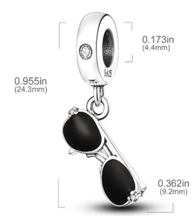 Charms představuje černé sluneční brýle, které jsou rozložitelné. Všechny oči budou upřeny na vás, když k náramku z korálků přidáte tento rozkošný černý visící korálek s motivem slunečních brýlí. Tento visací přívěsek s roztomilými slunečními brýlemi navrženými s hladkým černým smaltem a třpytivými bílými drahokamy Zirkonu. Váš letní šperkový náramek je právě roztomilejší.