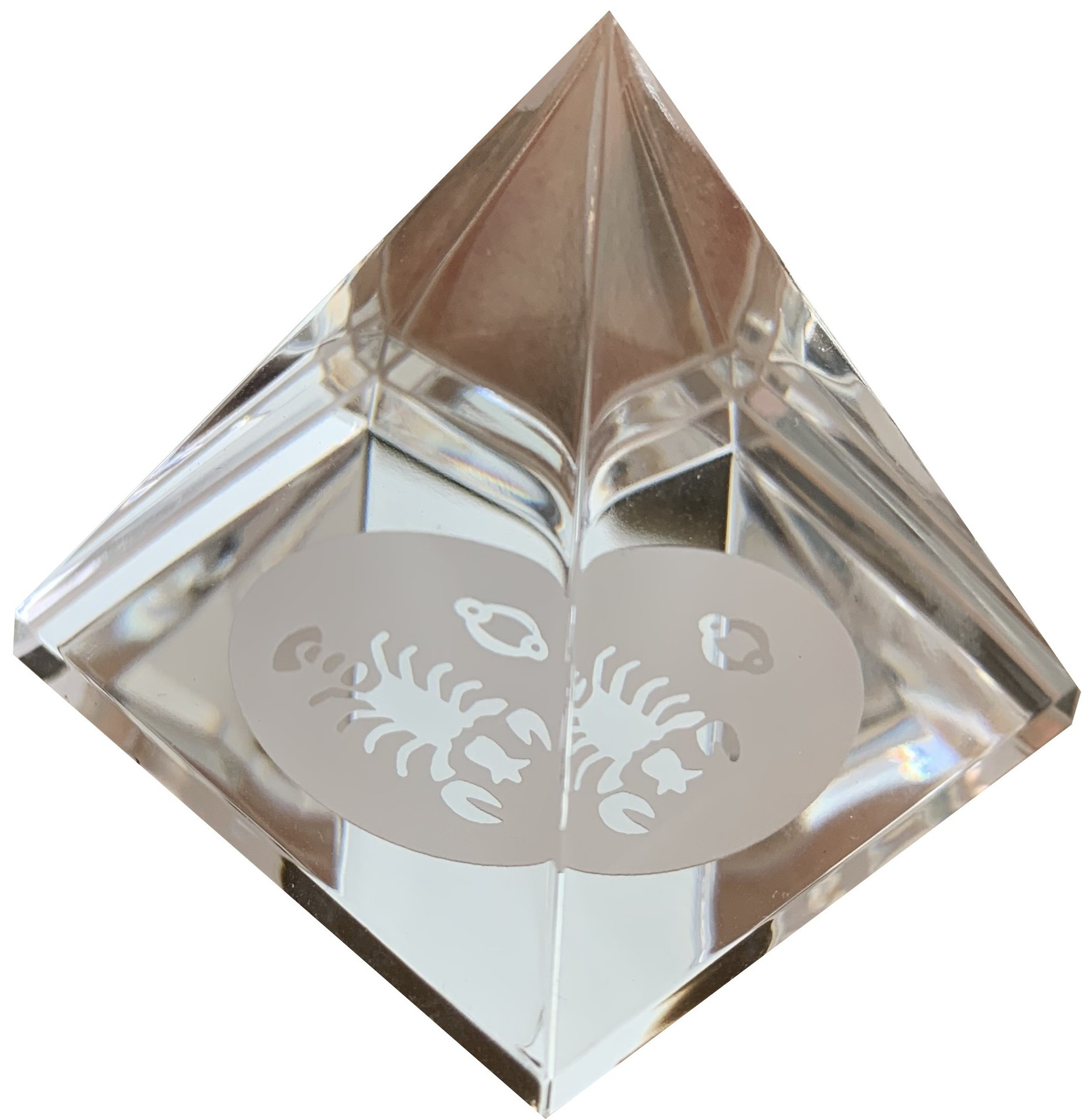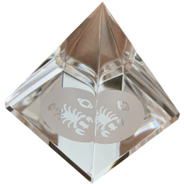 Pyramida je vyrobena z českého skla. Čtyři šikmé stěny jsou lisované s ohněm leštěným povrchem, spodní rovinná plocha je mechanicky broušená a leštěná.