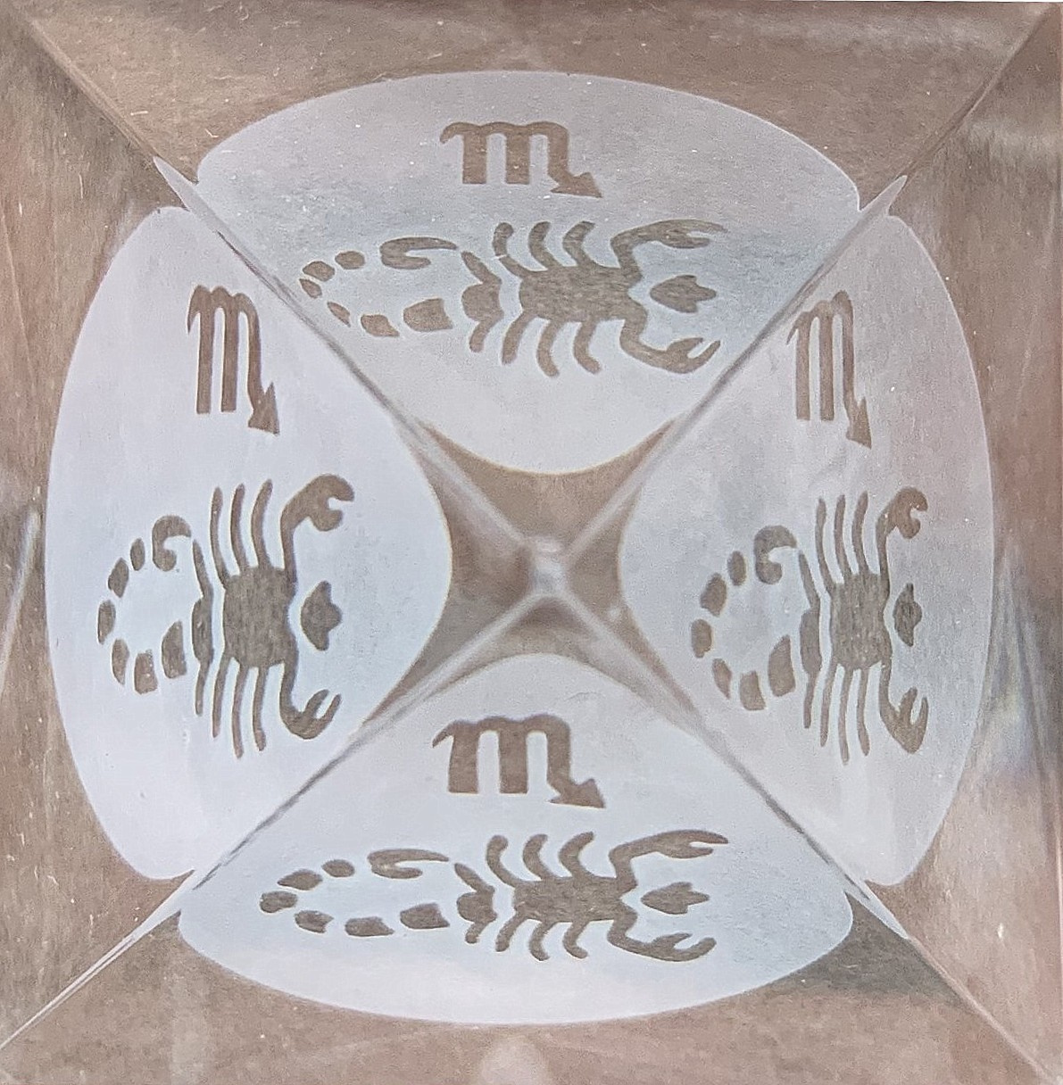 Pyramida je vyrobena z českého skla. Čtyři šikmé stěny jsou lisované s ohněm leštěným povrchem, spodní rovinná plocha je mechanicky broušená a leštěná.