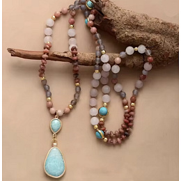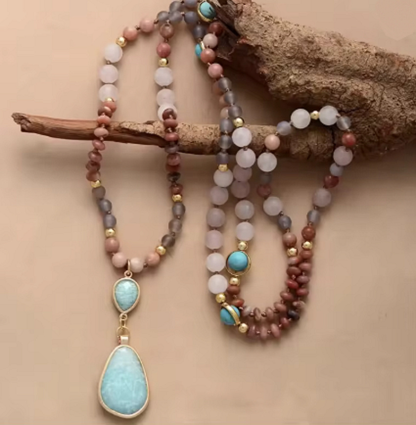 Každý detail náhrdelníku je promyšlený – od pečlivě vybraných korálků až po výrazný přívěsek, který dodává celku luxusní a sofistikovaný vzhled. Přírodní tóny v kombinaci se zlatými prvky působí klidně, ale zároveň výjimečně a nepřehlédnutelně.