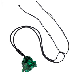 Aus chemischer Sicht ist Malachit ein Kupferhydrocarbonat. Es handelt sich um ein Mineral, das normalerweise Beläge, nadelförmige Kristalle oder massive, nierenförmige Aggregate mit schichtarTiger Struktur bildet. Bereits im alten Ägypten wurden daraus Kameen, Amulette und andere Ziergegenstände geschnitzt, zerkleinerter Malachit wurde ebenfalls als Farbstoff in der Malerei oder als Schminke verwendet. Der angebotene Stein stammt aus dem Kongo.