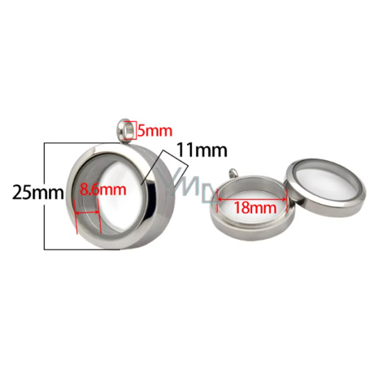 88">Medailon z nerezové oceli s otočným uzávěrem – ocelová (stříbrná), Ø 25 mm (tl. 11 mm)