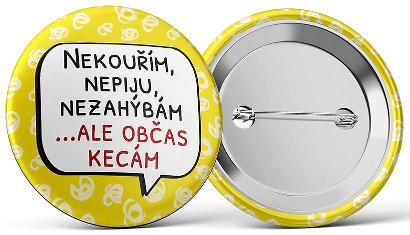 Ideální milý dárek pro toho, kdo se rád směje, miluje vtípky a zábavu. Tělo placky je z kovu, opatřeno spínacím špendlíkem.