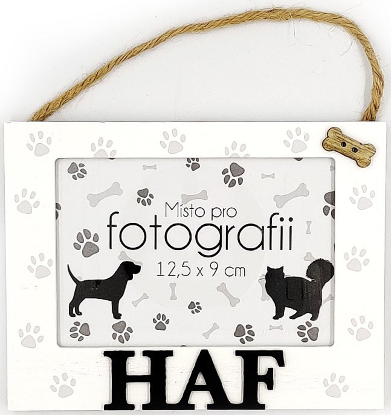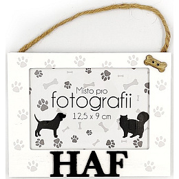 Originální dřevěný fotorámeček s tlapkami domácího mazlíčka a textem „HAF“ lze pověsit na dveře nebo na zeď. Stačí jen doplnit oblíbenou fotkou vašeho pejska a bude vám stále připomínat společně strávené chvíle.