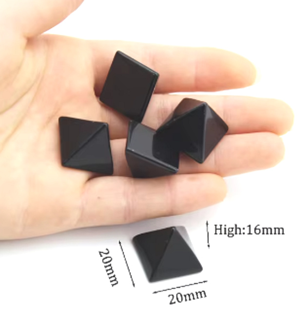 Beschreibung Obsidian schwarz Pyramide Naturstein 2 x 2 x 1,6 cm reinigt - Energie - Harmonie - Emotionen 1 Stück, Rettungsstein