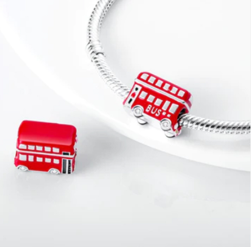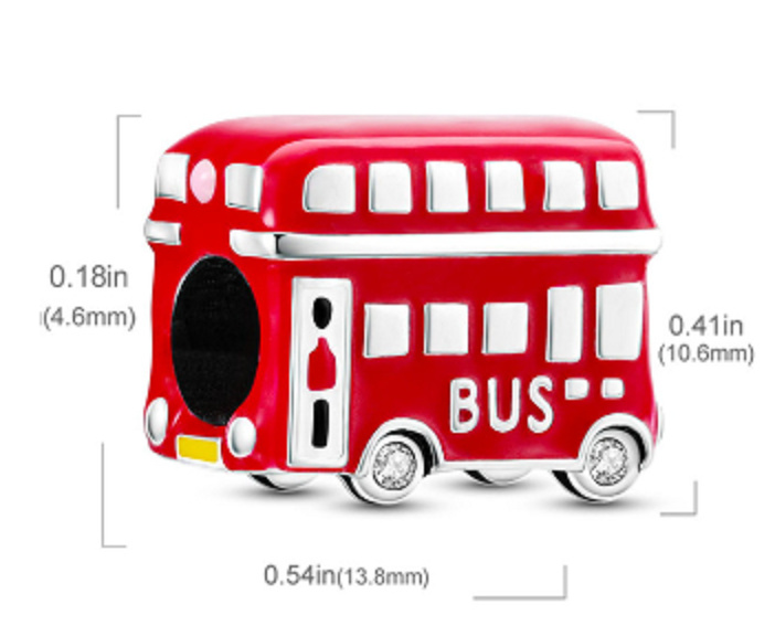 Přívěsek s londýnským autobusem s královninou stráží na boku. Navrženo s hladkým červeným, černým a žlutým smaltem a bílými třpytivými drahokamy Zirkonu. Přemýšlíte, co si přivezete z výletu z Londýna? Kupte si tento přívěsek na náramek s motivem červeného autobusu a vzpomeňte si na tento výlet, kdykoliv se podíváte na svůj náramek.