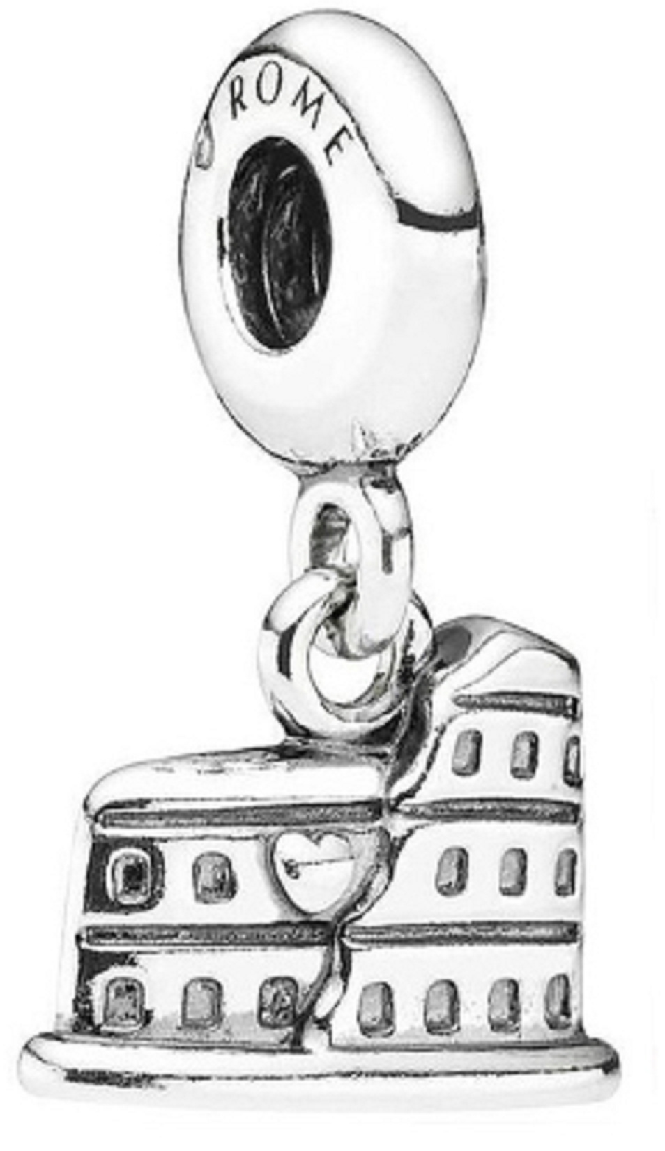 Visací přívěsek s vyobrazením Colossea v Římě Itálie, navržený se zářivě bílými drahokamy Zirkonu na prstenu přívěsku. Dokonalý způsob, jak si vážit svých cest do Říma nebo bucket list? Tento korálek patří do naší cestovatelské kolekce. Přívěsek je určen pro všechny, kteří si chtějí připomenout příjemně strávené chvíle v Říme nebo pro něž je návštěva této metropole zatím nesplněným snem.