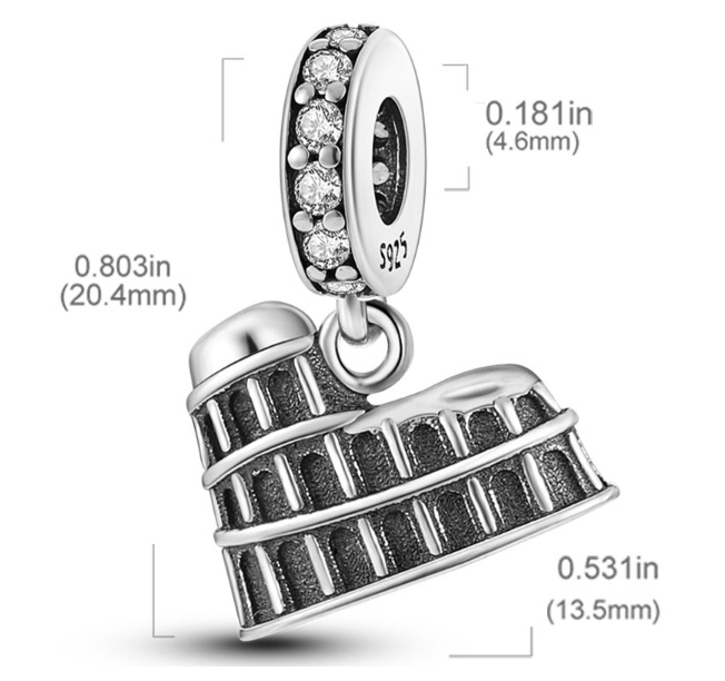 Vydali jste se na výlet do italského města Řím a chcete si přivést památku na toto úžasné místo? Kupte si přívěsek na náramek v podobě římského kolosea, který Vám bude na vašem náramku připomínat tento krásný výlet.