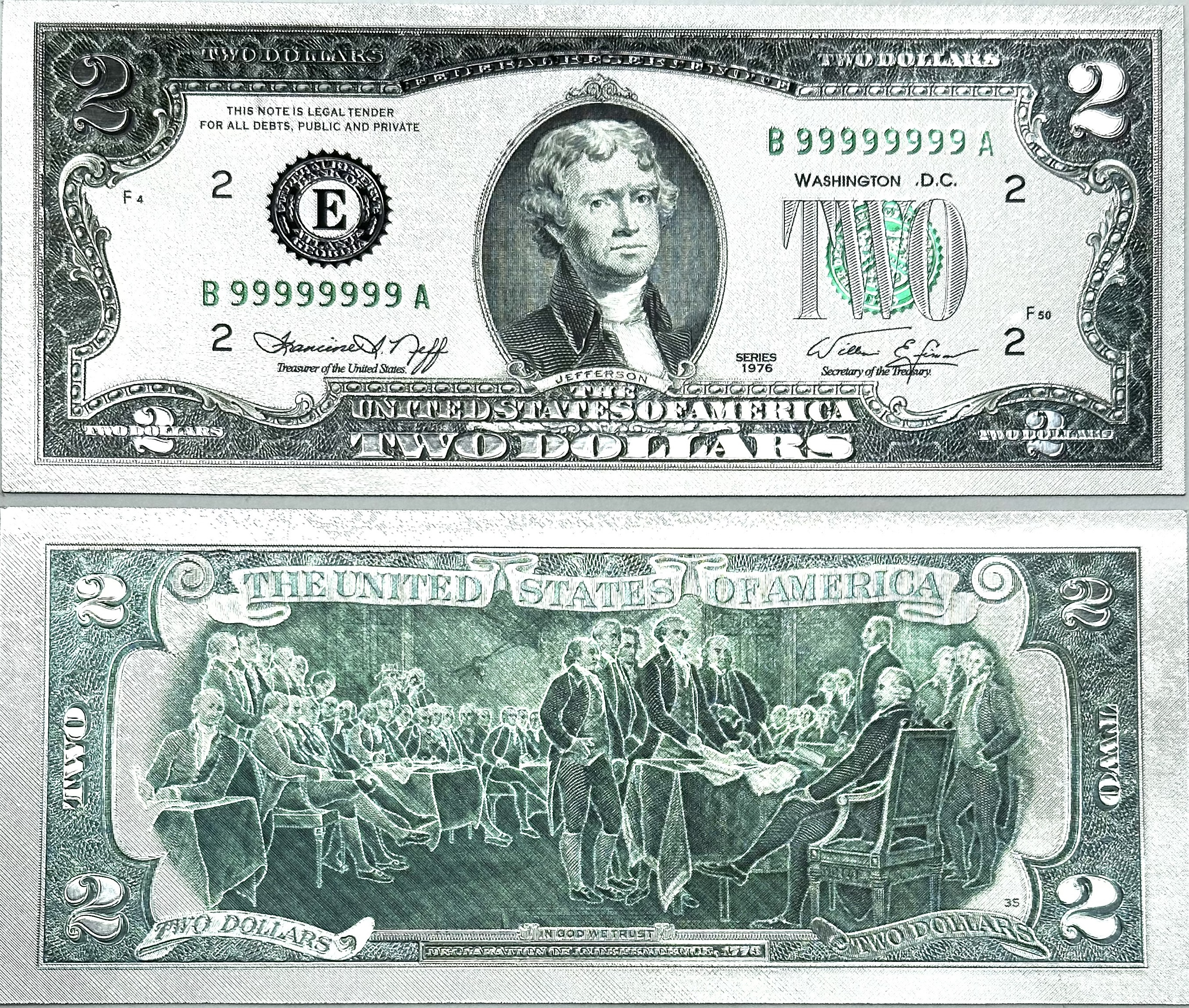 Postříbřená 2-dolarovka pro cestovatele a lidi, co chtějí přilákat více peněz do své peněženky, bytu, kanceláře.