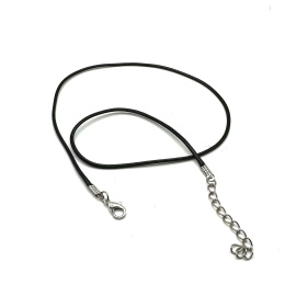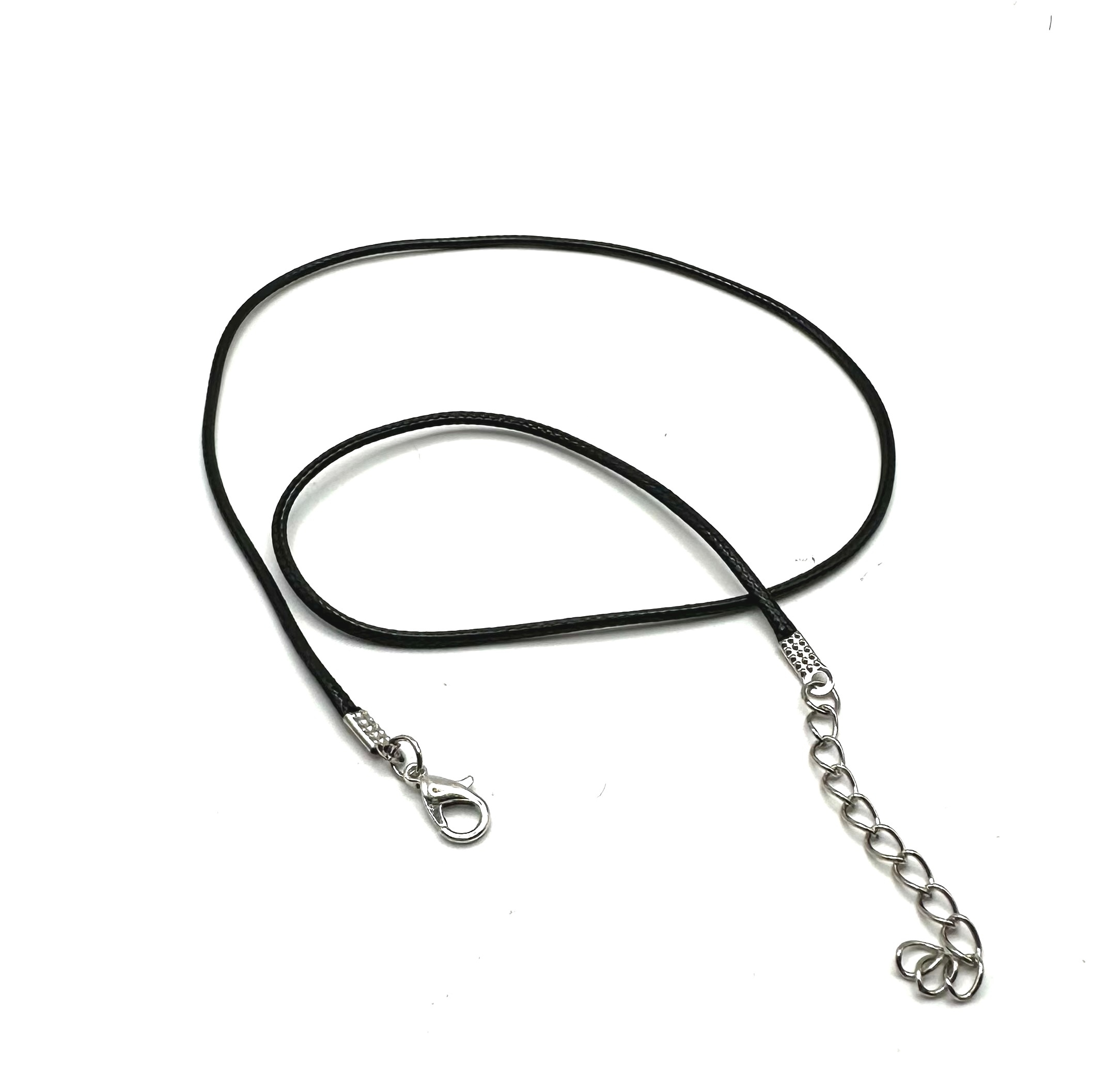 Bavlněná šňůrka, která je povrchově ošetřené voskováním a s hotovým připevněným zapínáním. Stačí pouze navléct přívěsek a vyrazit. Samozřejmostí tohoto hotového výrobku je prodlužovací řetízek. Délka 45 cm + 5 cm adjustační řetízek. Karabinka 7 x 12 mm, šňůra průměr 1,5 mm.